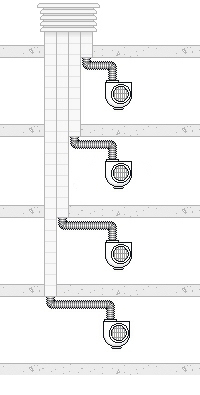 Ventilador de extracção de cozinha, de dimensões 218x127x304 mm, velocidade 2250 r.p.m., caudal de descarga livre 250 m³/h, com tramo de ligação de tubo flexível de alumínio a conduta de extracção para evacuação de fumos; instalação no interior da campana. Inclusive elementos de fixação.
