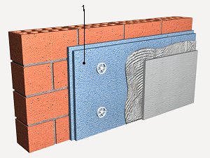 Fixação mecânica para painéis isolantes de poliestireno extrudido, colocados directamente sobre a superfície suporte. |