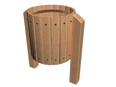 Papeleira, de 50x30x80 cm e 26 litros de capacidade, com corpo de madeira, colocação com bucha química, anilha e parafuso. | ||