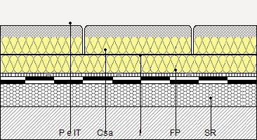 | Cobertura plana acessível, não ventilada, com pavimento flutuante isolante, tipo invertida. Impermeabilização com lâminas asfálticas, tipo monocamada melhorada | ||