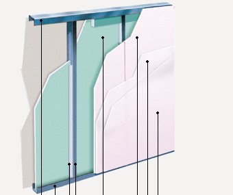 | Parede de placas de gesso laminado, para parede de caixa de ascensor. Sistema "PLACO" | ||