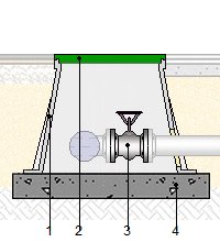 Caixa de passagem pré-fabricada, de polipropileno, de secção rectangular de 51x37 cm na base e 30 cm de altura, com tampa de 38x25 cm e válvula de seccionamento adufa de latão fundido, sobre base de betão simples C20/25 (X0(P); D25; S2; Cl 1,0) de 15 cm de espessura. Inclusive ligações de tubagens e remates. | ||