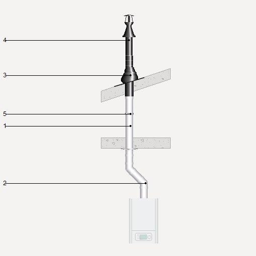 Conduta para evacuação dos produtos da combustão e admissão de ar comburente, formada por tubo de parede dupla com junta de estanquidade, de 60/100 mm de diâmetro, composto por parede interior de alumínio e parede exterior de alumínio acabamento lacado cor branca, com junta de estanquidade de silicone, temperatura máxima de 200°C, pressão de trabalho até 200 Pa. Inclusive acessórios, peças especiais, módulos finais e material auxiliar para montagem e fixação. | ||