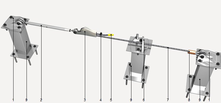 | Linha de ancoragem horizontal permanente, de cabo de aço, sem amortecedor de quedas | ||