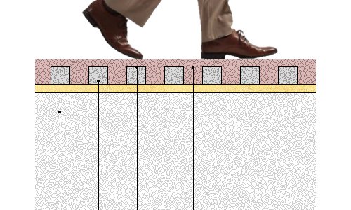 Pavimento drenante, com peças pré-fabricadas de betão e inerte