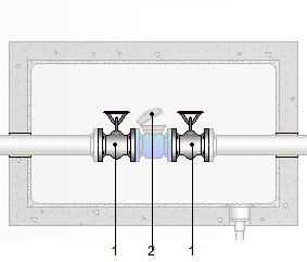 Pré-instalação de contador individual de água 1/2" DN 15 mm, colocado em nicho, ligado ao ramal de distribuição e ao ramal de distribuição individual, formada por duas válvulas de corte adufa de latão fundido. Inclusive aro e tampa amovível de ferro fundido dúctil e material auxiliar. | ||