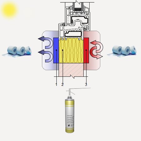 Limpeza e preparação da superfície na qual se vai aplicar a espuma de poliuretano. Aplicação da espuma de poliuretano. Eliminação da espuma de poliuretano sobrante, após a sua solidificação. Corte e colocação da membrana de estanquidade exterior. Corte e colocação da membrana de estanquidade interior.