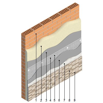 | Sistema ETICS "WEBER" de isolamento térmico pelo exterior de fachadas. Revestimento com peças de grés porcelânico. Colocação em camada fina | ||