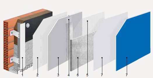Limpeza e preparação da superfície suporte. Implantação das juntas de dilatação e panos de trabalho. Marcação da disposição do revestimento e dos pontos de ancoragem da subestrutura suporte. Fixação dos soportes ao suporte base. Fixação da subestrutura suporte ao pano principal e à laje. Colocação e fixação provisória da impermeabilização. Colocação e aparafusamento das placas à subestrutura suporte. Tratamento de juntas. Realização de todos os trabalhos necessários para a execução dos vãos. Colocação do perfil para remate de padieiras. Espalhamento da camada de argamassa base e colocação da malha de reforço. Aplicação de primário. Aplicação da camada de acabamento.